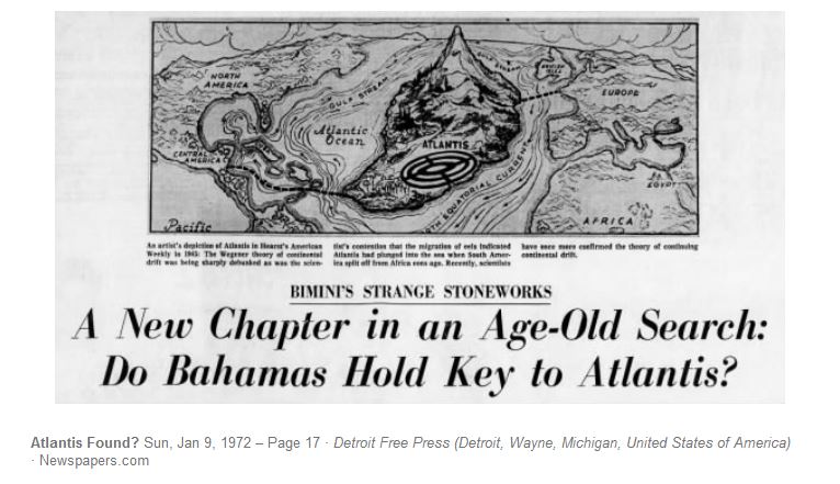 Fascinating article, Did Atlanteans Build the Bimini Wall?, written by Taraya Galloway, from the Detroit Free Press of 1972, The Bimini Strange Stonework. Do these